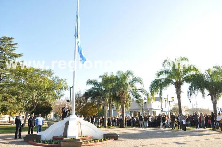 Inmediatamente después, y con el aporte de la Banda Comunal “Don Celestino Yori”, el presidente comunal, Mario Schimpf; el Juez de Paz, Danilo Pinzano; y el Subjefe de la Comisaría VI, Pedro Pereira, izaron la bandera en el mástil de la plaza.