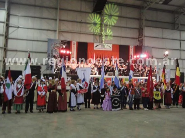 Luego fue el turno de la presentación de las Colectividades en el escenario, donde hubo un protocolo de inauguración donde se entonaron las estrofas del Himno Nacional Argentino, interpretado por la Banda de Música Municipal y coreado por la concurrencia.